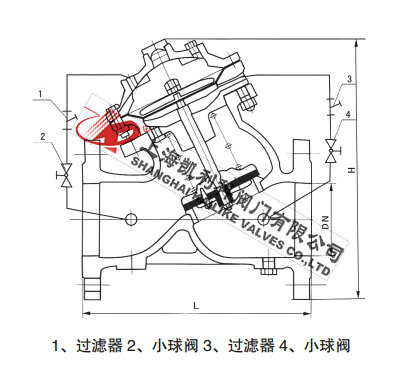 JD745X多功能水泵控制閥由主閥和調(diào)節(jié)閥及接管系統(tǒng)組成,閥體采用直流式閥體,主閥控制室為膜片式或活塞式的雙控制室結(jié)構(gòu),控制室比一般水力控制閥增加了一個(gè),增加了對主閥的控制功能,實(shí)現(xiàn)了對水泵出口的緩慢開啟、全開、緩閉、截止等多功能控制,實(shí)現(xiàn)了一個(gè)閥門、一次調(diào)節(jié)對水泵出口的多功能控制。